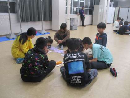 一日の終わりには、仲間のよさを伝えたり、心に残った出来事を班でしっかり振り返ったりしました。