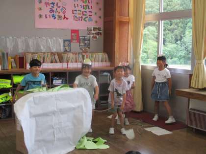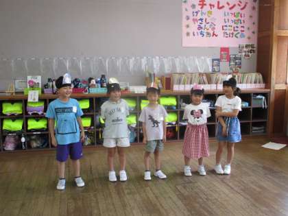 国語科「おおきなかぶ」の学習のまとめとして、劇をしました。グループごとに役割を決め、登場人物の気持ちを想像しながら劇をしました。練習を重ねるうちに、声の大きさや振り付けも工夫することができました。