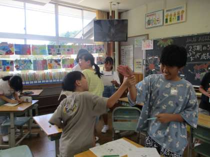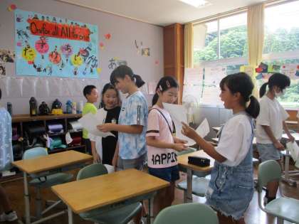 学級では、お互いの夏休み中の過ごし方についてビンゴ形式で対話を行いました。今回はオールビンゴになる子供がたくさんいました。どんどん学級の友達に話しかけられるようになっているのですね。