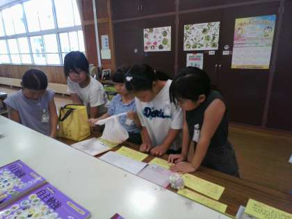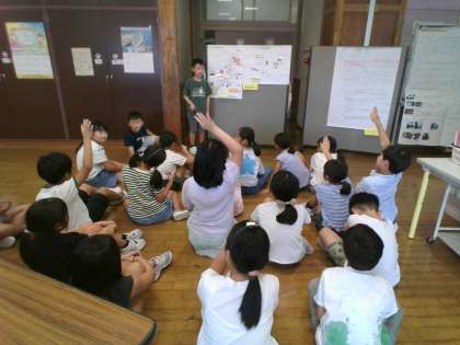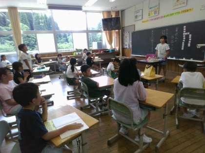今日は、夏休みの作品を紹介しました。頑張ったことや工夫したことを作品を見せながら発表しました。友達の作品の素敵だと感じたことも伝え合いました。