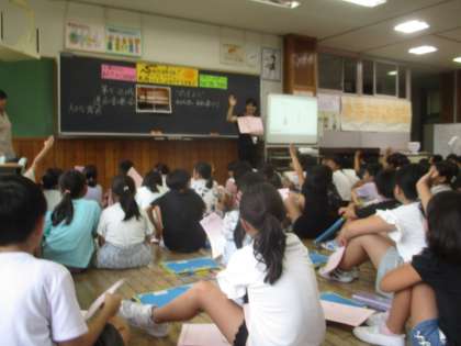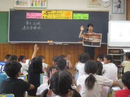 区域連合音楽会に向けての練習がスタートしました。今日は、合唱する音楽を聴いてどんな曲の感じがするか話し合いました。曲は「MUSIC」、「ぼくの太陽」の2曲を歌います。
