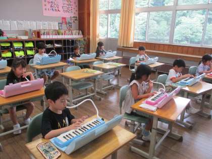 2学期から、音楽科の時間に鍵盤ハーモニカを使って学習をしています。今日は、どんな音が出せるか試してみたり、自分のお気に入りの音を見つけたりする活動をしました。
