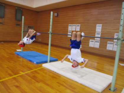 今日は2年生になって初めての鉄棒でした。これから、自分なりの「てつぼうあそび名人」を目指して練習に取り組みたいと思います。