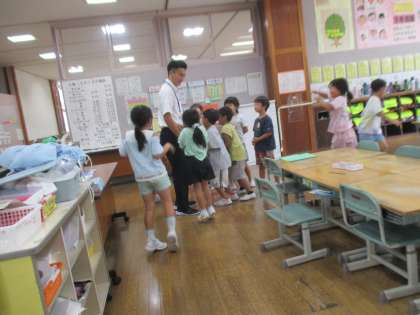 教育実習生の方にも参加してもらい、元気よく活動に取り組むことができました。