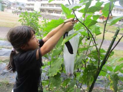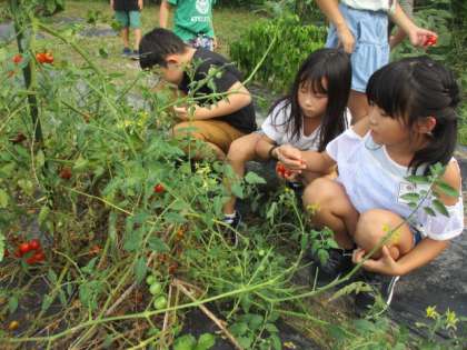 休み時間には、畑で野菜を収穫したり、虫を捕まえたりして過ごす姿が見られました。