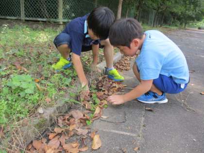 また、畑の近くの落ち葉に隠れるトカゲの親子を見付けると、一生懸命捕まえていました。これからも、植物や生き物に親しんでいってほしいなと思います。