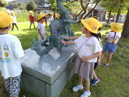図画工作科の学習では、身の回りのものを触って手触りを言葉で表したり、触った感触を楽しんだりしました。今日は、グラウンドや校庭、校内でいろいろなものを触って、触り心地を楽しみました。