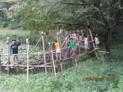 ターザンロープやいかだ乗り、池の中にあるジャングル、竹やぶの中にあるジャングルを楽しみました。