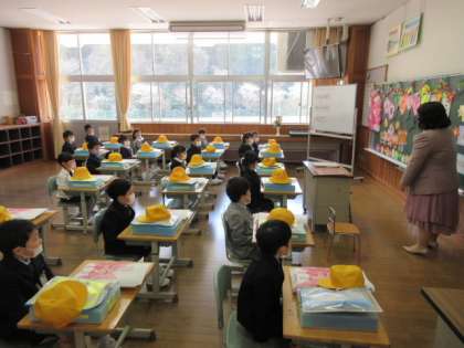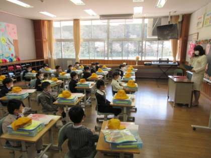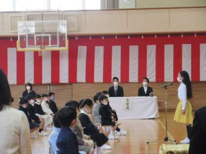 1年生の子供たちは、先生や児童代表の言葉を真剣に聞いていました。とても立派な態度でした。