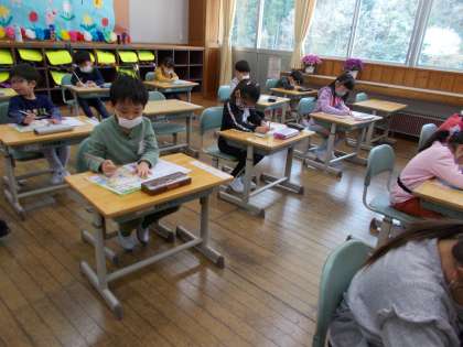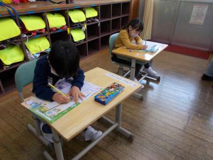 正しい姿勢、正しい鉛筆の持ち方で、線をなぞり書きしました。点線からはみ出さずに、丁寧に書くことができました。