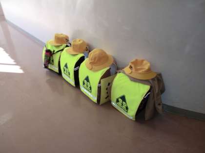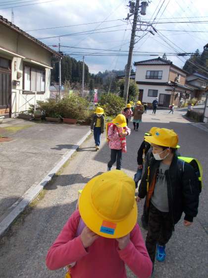 先生方の引率のもとで、家まで歩いて下校しました。3枚目の写真は、バスの時刻まで待っている子供たちの荷物です。「きれい置いてね」の声がけで、ここまで美しく整えておくことができました。すばらしい!!