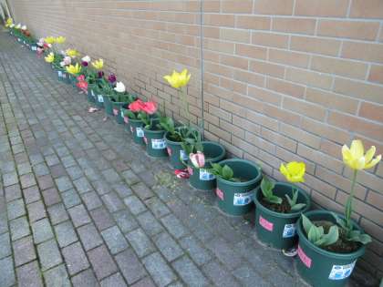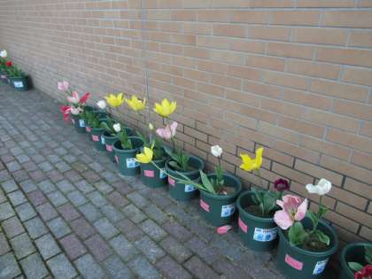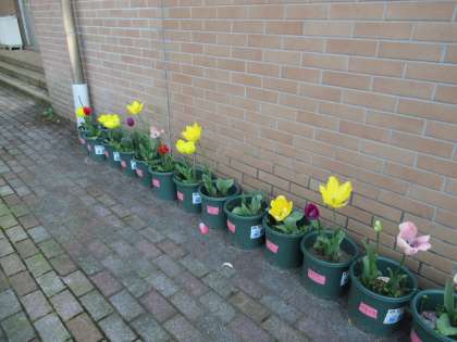 みなさんがきょねんうえたチューリップが、元気よくさいています。