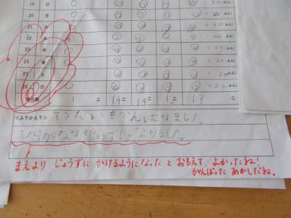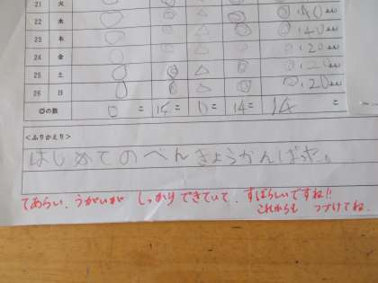 学習プリントやふりかえりカードから、子供たちのがんばりが伝わってきました。中には、手紙を同封してくれる子供もいました。ありがとう!とってもうれしかったです。