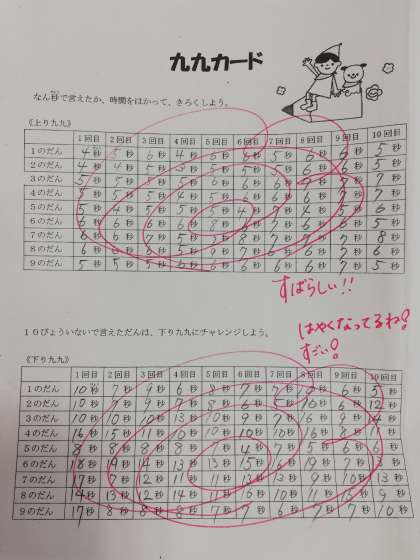 下り九九で、54秒も早くなった「キラキラさん」もいました!