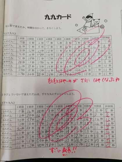 上り九九や下り九九に、何度もチャレンジしているようです。