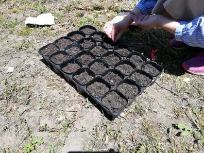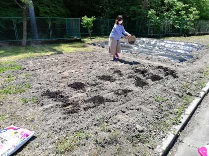 先週の木曜日に、先生二人で、3年生の畑をたがやしたり、3年生みんなで育てるヒマワリ、ピーマン、オクラのたねをまいたりしました。本当は、みなさんといっしょにまきたかったのですが、きせつのものなので、先生たちですることにしました。