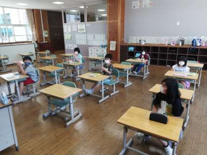 音楽の時間には、拍に乗って先生やリーダーの打つリズムをみんなでまねました。リーダーは順番に代わります。一人一人が、工夫を凝らしたリズムを発表していました。変わったリズムや、とても速いリズムをとるリーダーもいて、みんな一生懸命にまねをしました。