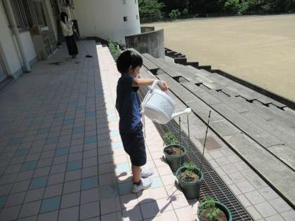 2年生 トマトの水やりをしたよ。