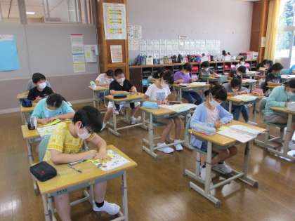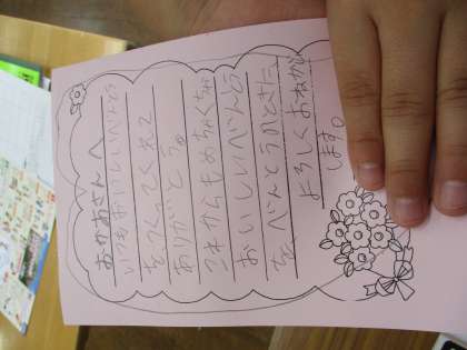 授業の最後に、今週お弁当を作ってくれているお家の方に手紙を書きました。書いた内容や渡し方も、子供たちが自分で決めていました。今日の家庭での団らんの話題につながったら・・・と、さらに心がほっこりする担任でした。