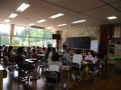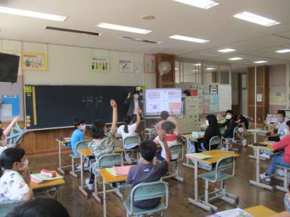 下:松組の先生との授業です。いつもと違う雰囲気で、楽しみながら学習に取り組んでいました。