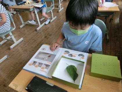 蚕を大切に育てようと、図鑑で調べたり、蚕の箱を用意したりして準備を進めています。