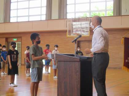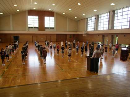 BFCバッジ授与式を体育館で行いました。真剣に式に参加する姿、代表として張り切っている宣誓を言う子供やバッジを受け取る子供たちの姿などを見ていて、高学年としての自覚や意識が高まっているのを感じました。