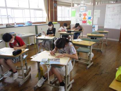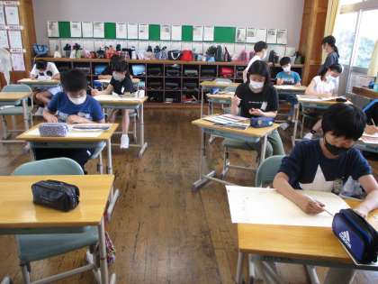 構図が決まったら、一人一人がじっと見つめながら丁寧に下絵を描いていました。来週は、色を塗っていきます。楽しみですね。