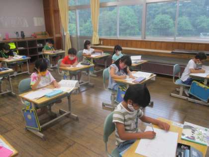 外はジメジメと暑いですが、冷房のきいた教室で子供たちは集中して学習に取り組んでいます。