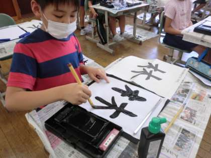 4年生になって、最初に取り組むのは「林」です。とめ・はね・はらいに気を付けて、一画一画ていねいに書いていました。