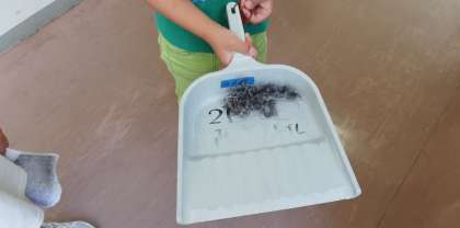 一生懸命掃除をしたことを教えてくれる子供たちです。