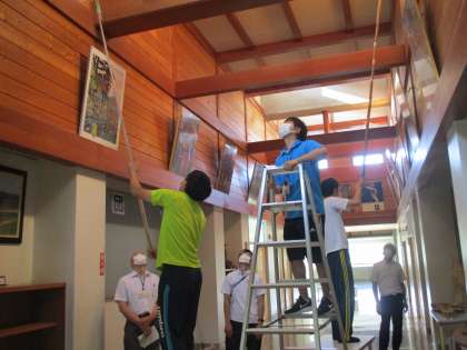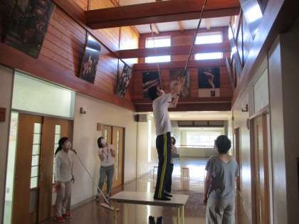 昨日のお昼頃に、かわいい訪問者がやって来ました。小さな雀です。窓から入ってきて、天窓の高いところへ迷い込み、外へ出られなくなってしまったようです。外へ逃がしてあげるために、職員が力を合わせて交代で鳥と追いかけっこしました。