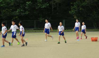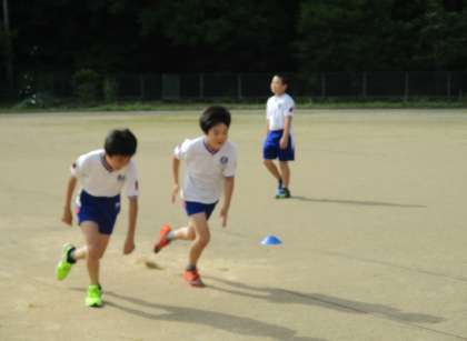 木曜日、5年生の朝トレーニングの日です。ダッシュの間のインターバルに簡単な動きを交えた走る運動を中心に取り組んでいます。