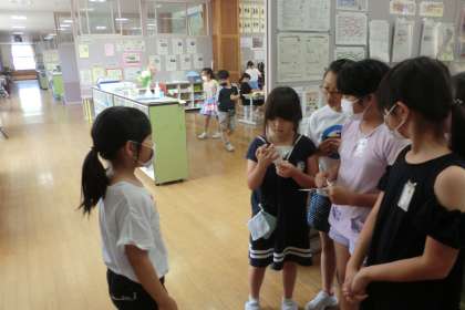 実際にカイコのお家を見せてもらうと、きちんと乾燥対策や繭作りの準備がしてあり、「このお家なら大丈夫!」「よく調べてお家づくりしているね!」と、3年生さんのがんばりを称賛していました。