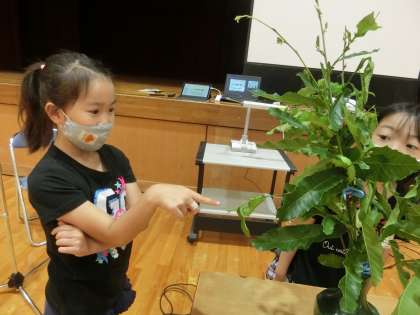 学習の後には、「子供たちが長い時間、真剣に話を聞いていて驚きました。」との言葉をいただきました。きっと、自分たちが育てている白い蚕のことと重ねながら聞いていたので、心に響いたのでしょう。