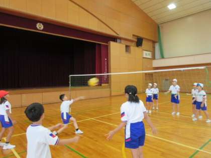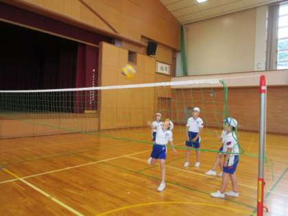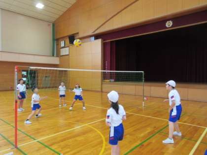 今日は、キャッチバレーボールをしました。ルールを理解して、仲間と声を掛け合ってボールをつなぐ姿が見られました。