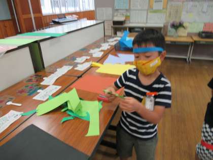 わっかを作って、いろいろなものに変身しようと飾り付けをしました。