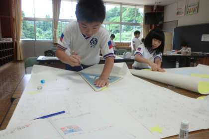 総合的な学習の時間と国語の学習と関連させて、新聞作りに取りかかりました。今まで調べてきて分かったことや、これから明らかにしていきたいこと等をまとめようと、どの子も真剣に取り組んでいました。