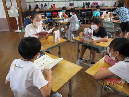 国語科の「私と本」という学習では、自分と本との関わりをふり返り、特に心に残っている本、友達に紹介したい本を選び、本について話す活動をしました。本の魅力や心に残った場面、自分の考えがどのように広がったか等、本と向き合って考えたことを発表しました。