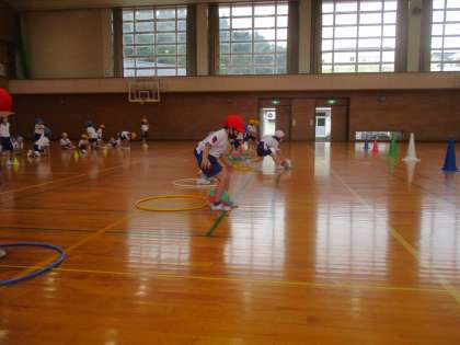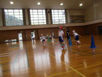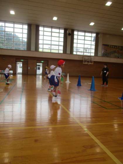 ボールを持って走ったり、足に挟んでジャンプしたり、ボールを上に投げながら走ったり・・・