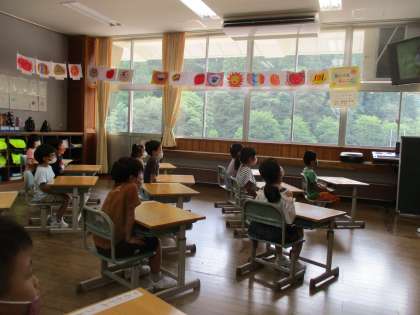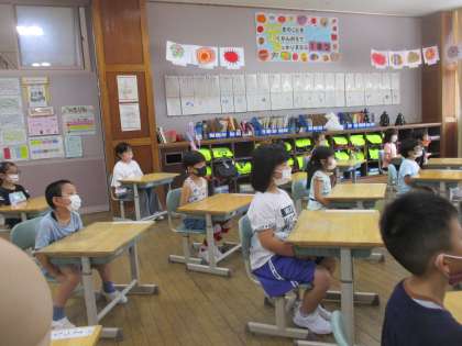 校長先生の話にあった「目標を立ててがんばる2学期」にするべく、さっそく各クラスで2学期の目当てを決めました。