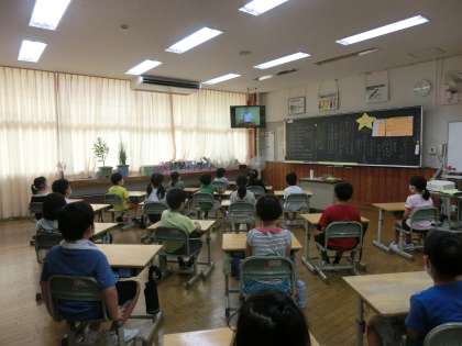 始業式では、姿勢正しく真剣な態度で校長先生のお話を聞くことができました。