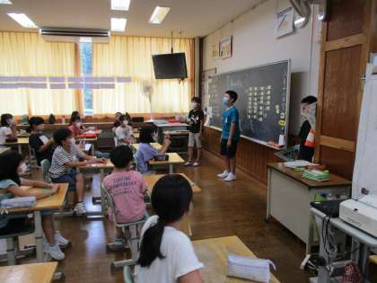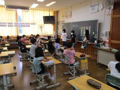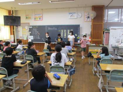 あっという間の夏休みでしたが、みんなの夏休みの思い出を聞き合いました。バーベキューに行った子、海に出かけた子、花火を見に行った子、家族で楽しい時間を過ごした子など、それぞれの特別な夏の思い出を聞き、ほっこりした気持ちになりました。質問タイムでは、友達の質問に笑顔で答える発表者の姿を見て、久しぶりに会える友達との時間を楽しんでいるように感じました。
