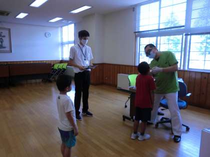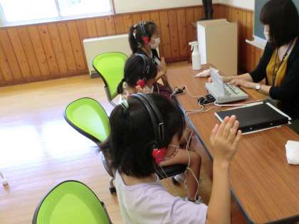 また、先週から聴力検査も行っています。こちらの検査でも、人数を減らす、ボタンを持たず挙手で応答する、器具の消毒をする等、感染症対策に配慮しながら進めています。