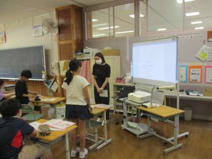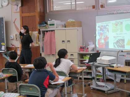 2学期から、新しいALTの先生に代わりました。オーストラリア出身の先生で、オーストラリアの文化や日本の文化との違いを教えてもらいました。拍手の仕方が、オーストラリアでは、円を描くように回して拍手をすると聞き、早速試してみる5年生です。今日は、自分たちの「名前」や「好きなもの」「誕生日」など、自己紹介をしました。