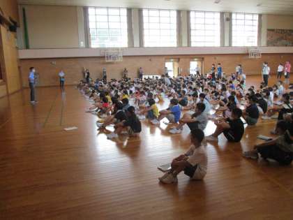 地震の避難訓練を行いました。学校行事が限られている中で、全校で集まる特別な時間です。高学年は、低学年のよいお手本となっていました。