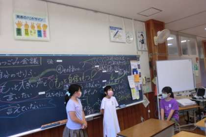 国語科「クラスみんなで決めるには」の学習で、学級の仲間とよりよく話し合う方法について学んだこともあり、今日から司会者を設けることにしました。(担任は話すのを我慢!)司会者の上手な進行のおかげで、いつもよりも活発に意見交換する姿が頼もしかったです。
