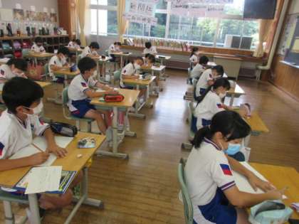 今年度から二週間に一度文字練タイムを実施しています。文字練タイムと家庭での漢字練習のおかげで、漢字検定では練習問題をせず、範囲を伝えるだけで90点以上を取り、合格する人がほとんどです。