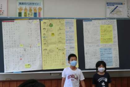 4年生では、総合的な学習の時間「わたしたちのくらしとごみ」に取り組んできた頑張りを新聞にまとめ、発表する会を行いました。4竹のテーマは、「あつまれごみの森」です。学習参観初日は「へらせごみ島」で様々な登場人物が出てくる楽しいストーリーでした。
