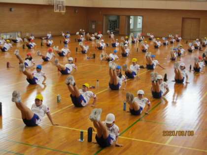 団体演技の練習では、ちょっとした動きでも手の位置やタイミング等を意識するだけでどんどん動きが美しくなっています。動き自体も少しずつそろってきました。