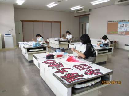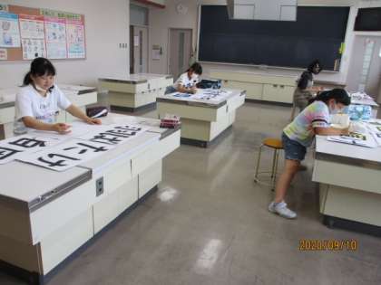 各団で決定したスローガンをデコ長さんがレイアウトを考えて、仕上げています。文字も絵もどんなふうに描くか、一生懸命考えながら描いています。